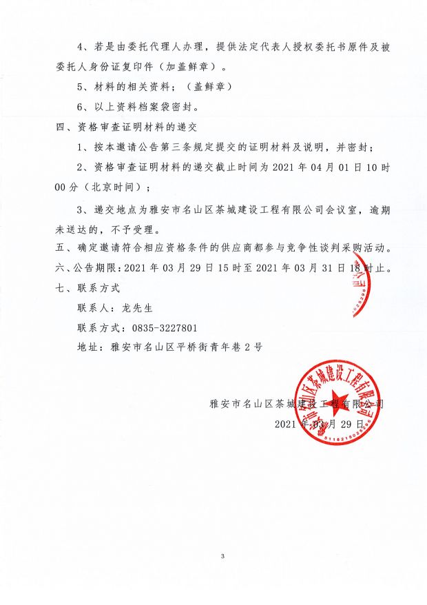 雅安市名山區(qū)茶城建設工程有限公司 關于公開招募2026年供應商入庫的公告...